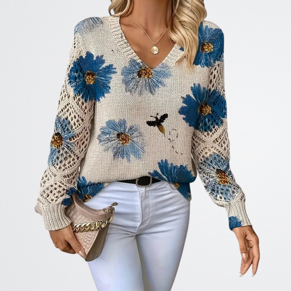 Dieser Pullover lässt dich schön fühlen, ohne es zu versuchen. Die sanften Blumenmuster und die gehäkelten Ärmel verleihen deinem Alltag etwas Besonderes. Perfekt für Familienessen, ein Mittagessen mit Freunden oder einen gemütlichen Arbeitstag, an dem du trotzdem gut aussehen möchtest.