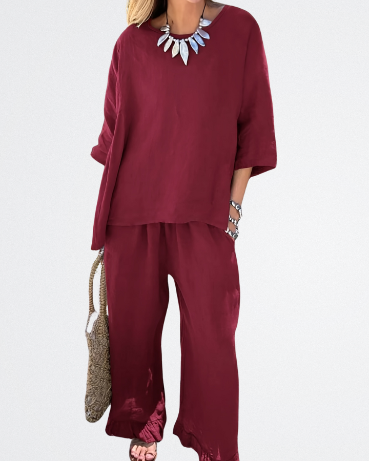 Dieses zweiteilige Set lässt Sie mühelos stilvoll aussehen, ohne in etwas Enges zu quetschen. Perfekt für Mittagessen auf der Terrasse, lange Reisetage oder wenn Sie ordentlich aussehen möchten, ohne viel Aufwand.